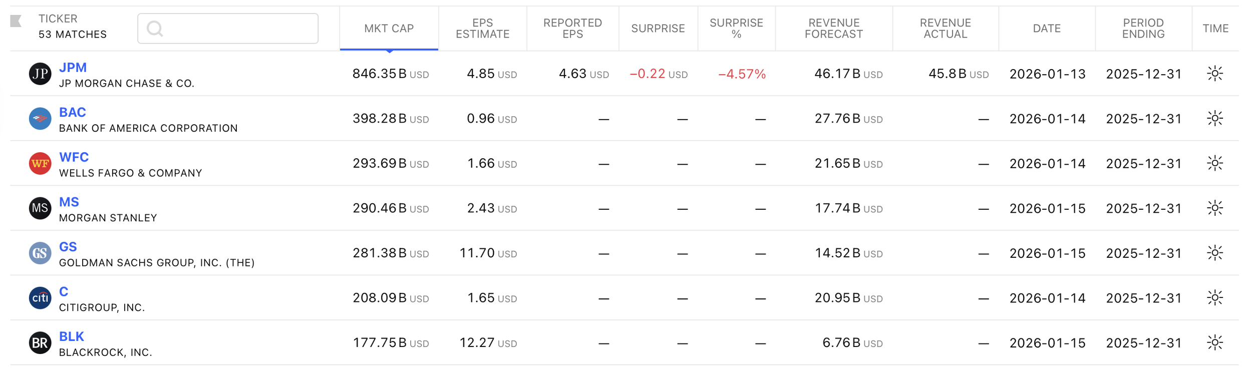 It’s a huge week for financials, with seven major banks reporting earnings.